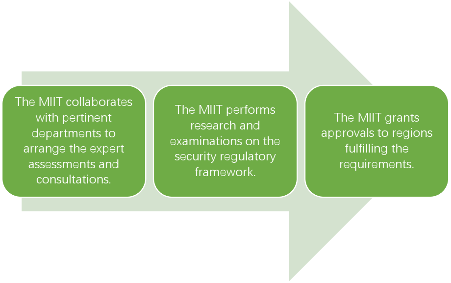 The MIIT Circular requires a three-step process to materialize into concrete pilot implementation plans for the respective local governments in the four pilot areas:
